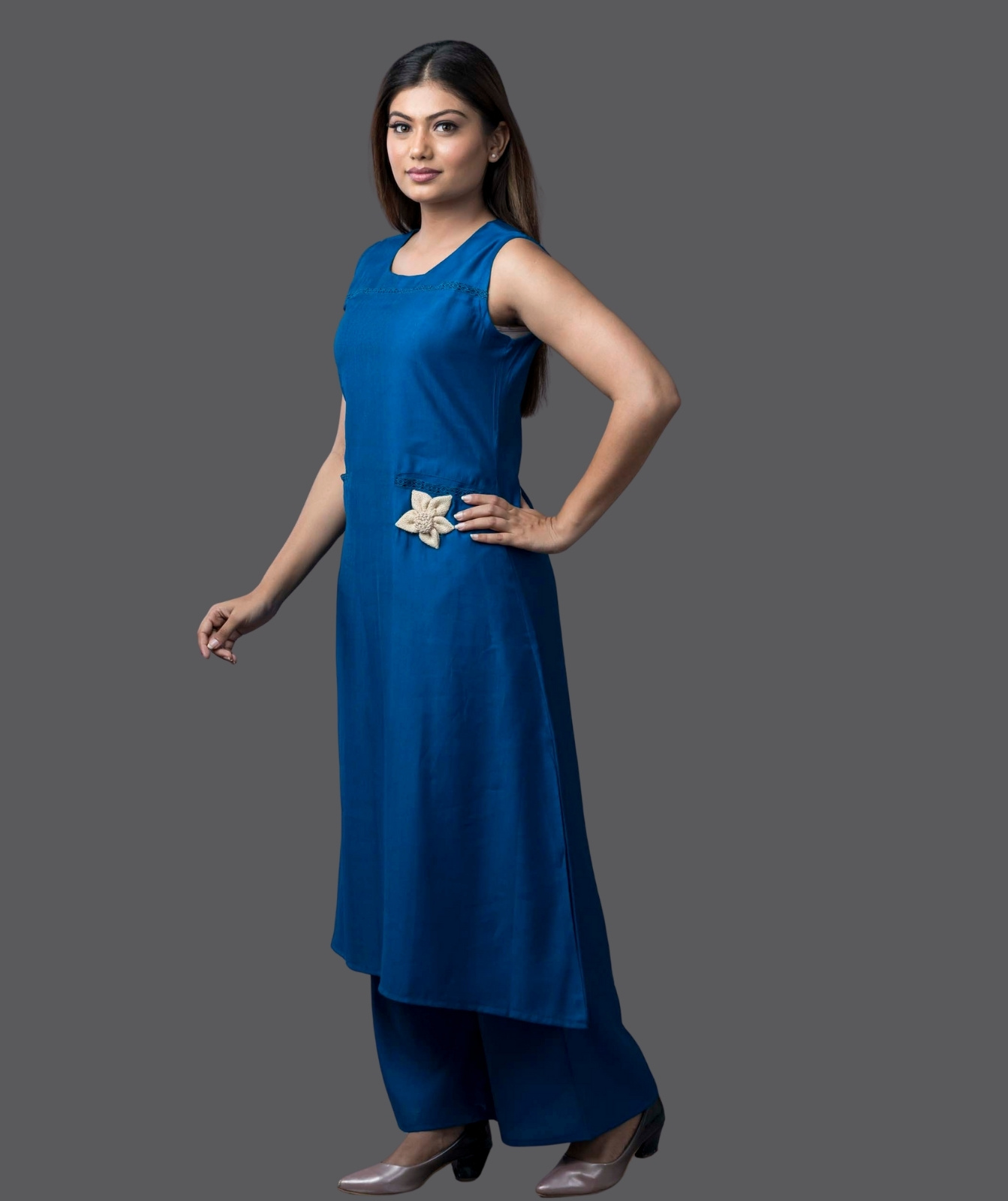 Experience the perfect fusion of luxury and artisanal craftsmanship with this Silk Co-ord Set featuring exquisite jute flower patch detailing. Made from premium silk, this set offers a smooth, lustrous texture with a graceful drape, while the handcrafted jute floral patches add a rustic, earthy charm. The co-ord includes a tailored top and matching bottoms, designed for effortless elegance and comfort. Whether for festive occasions, evening gatherings, or statement everyday wear, this ensemble exudes sophistication with a touch of nature-inspired artistry
