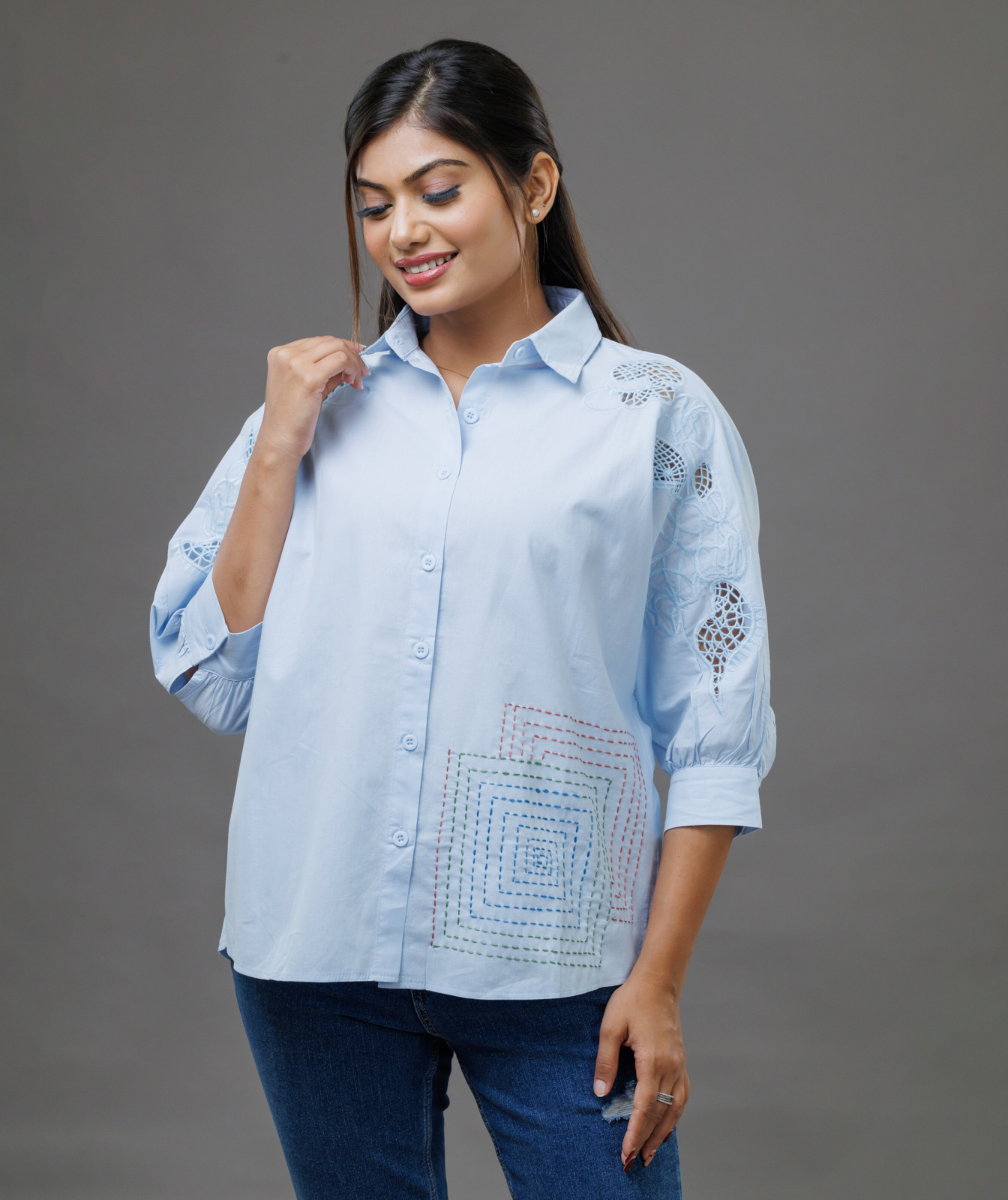 Minimalist with a touch of artisanal flair, the Running Stitch Oversized Shirt redefines everyday style. Featuring visible running stitch detailing that adds handcrafted charm, this shirt blends laid-back comfort with thoughtful design. Its loose, flowing shape makes it perfect for an effortlessly cool look.