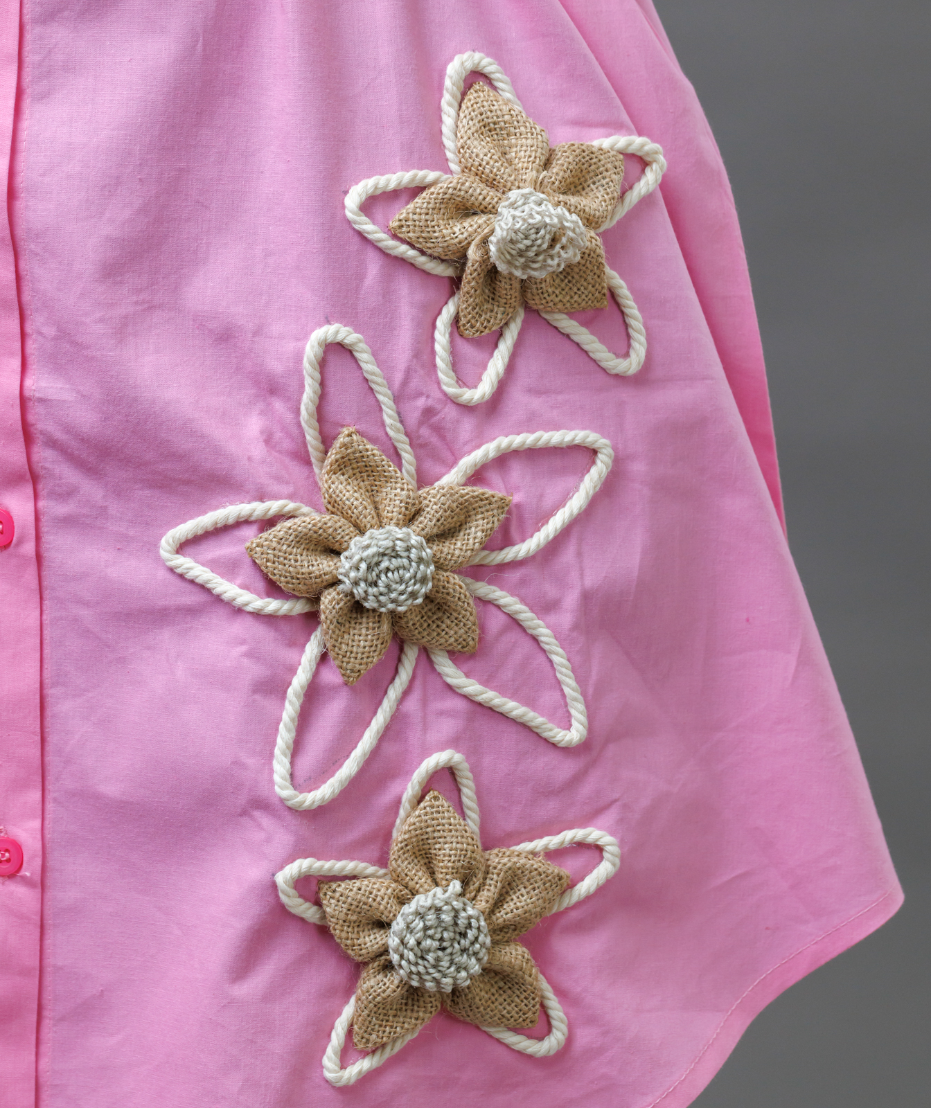 Brighten up your day with this casual cotton one-piece, designed in eye-catching vibrant colors that make a statement without trying too hard. Made from soft, breathable cotton, it features a relaxed silhouette that offers both comfort and ease of movement. Perfect for sunny strolls, coffee runs, or weekend lounging, this all-in-one outfit brings playful energy to your everyday wardrobe. Functional details like balloon sleeves, handmade floral patch with thread work and button-up front keep your look fresh and full of personality.