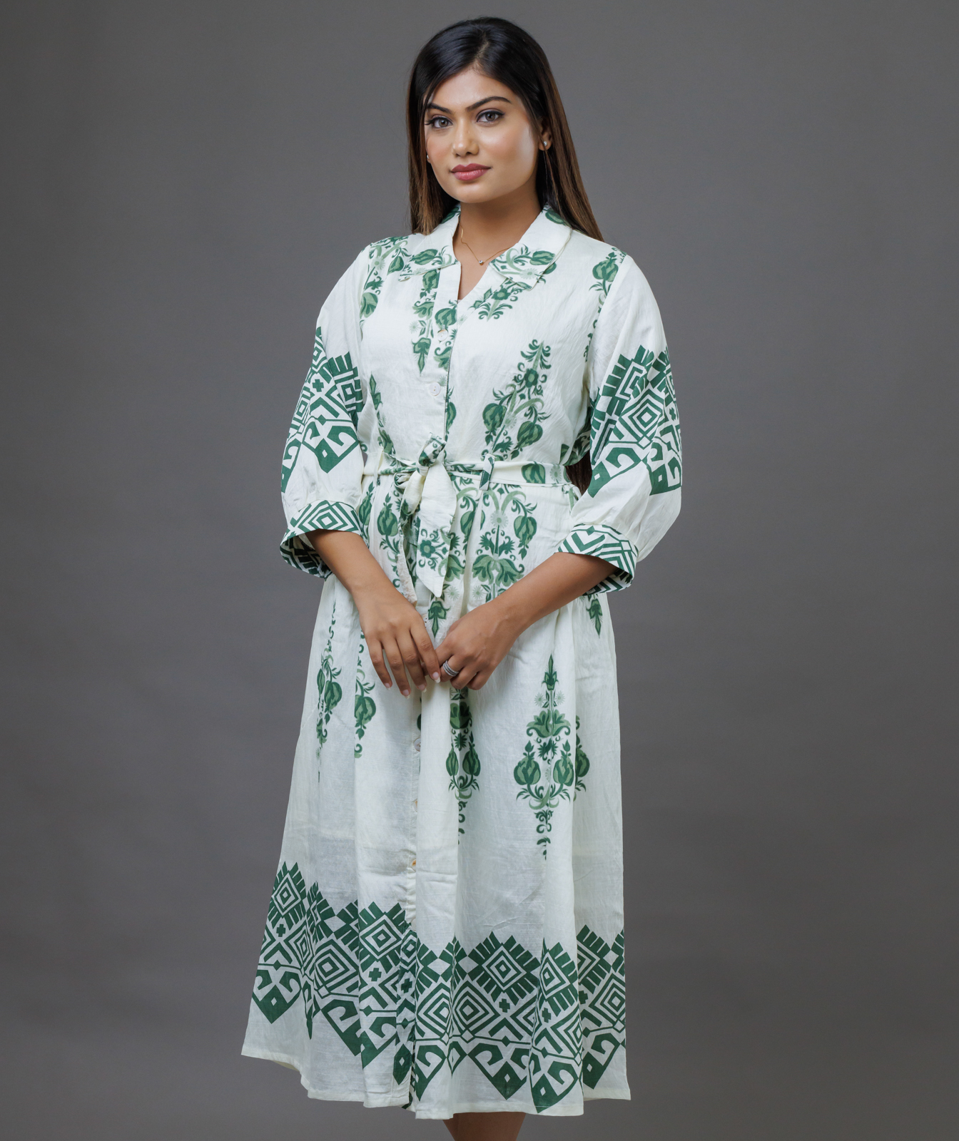 Effortless style meets timeless tradition in this block print one-piece. Crafted from soft, breathable cotton, this outfit features hand-block printed patterns that add artisanal charm and character to your look. The relaxed silhouette offers all-day com fort, while thoughtful details like side pockets, a button-down front, tie waist, and lightweight construction make it ideal for everything from work-from-home days to market strolls. Versatile and easy to dress up or down, this one-piece is your daily go-to for comfort with a touch of heritage flair.