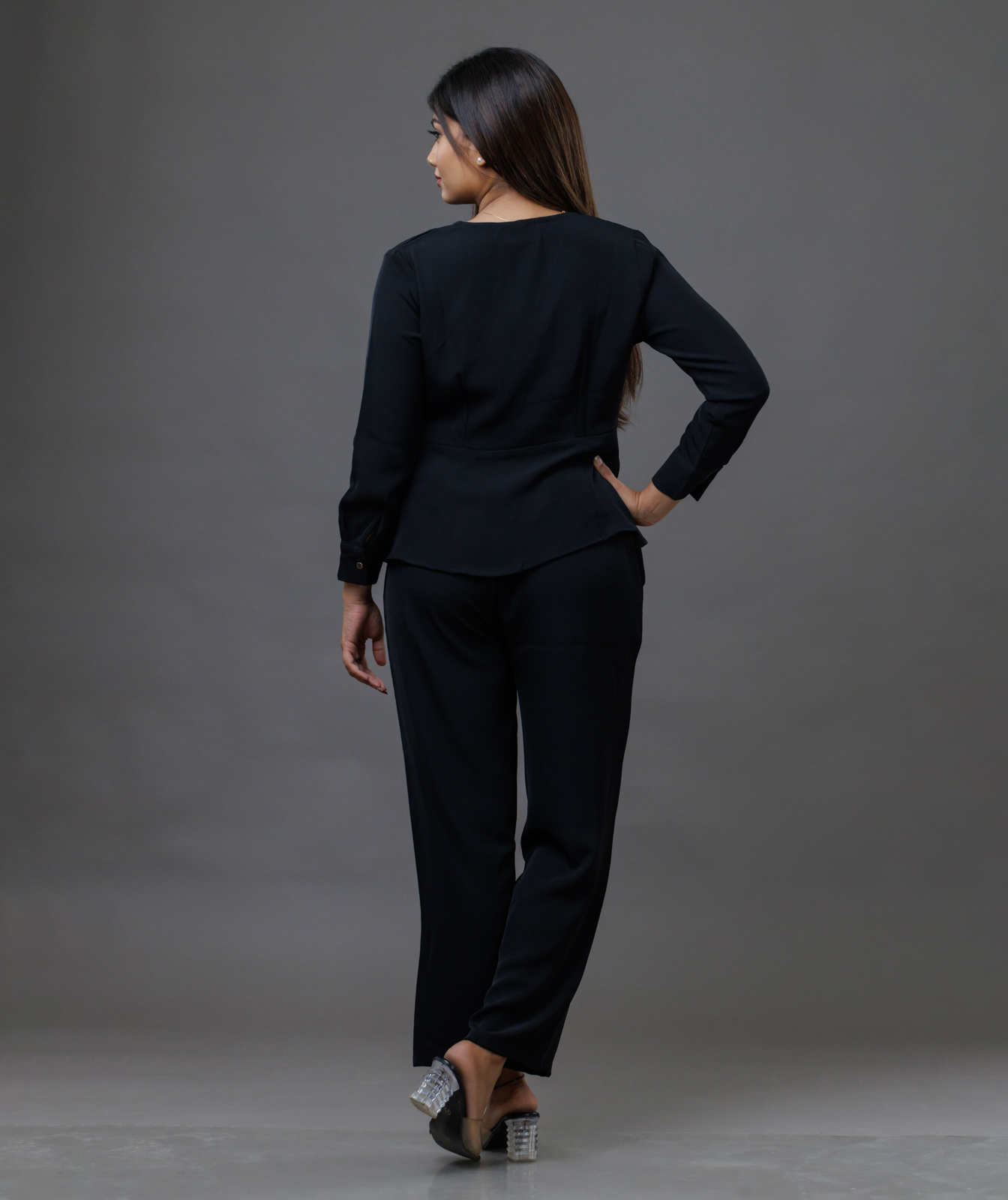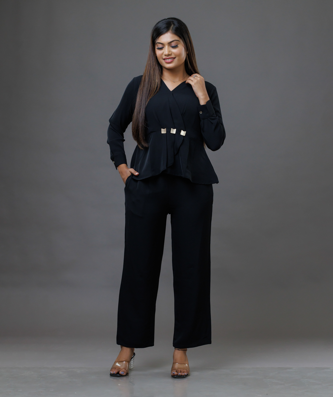 Command attention with timeless sophistication in this Black Party Wear Co-ord Set. Tailored to perfection, this matching set features a flattering shape that combines comfort with a bold, attractive edge. Whether it is a night out, festive occasion, or special dinner, this all-black ensemble makes a statement with minimal effort.