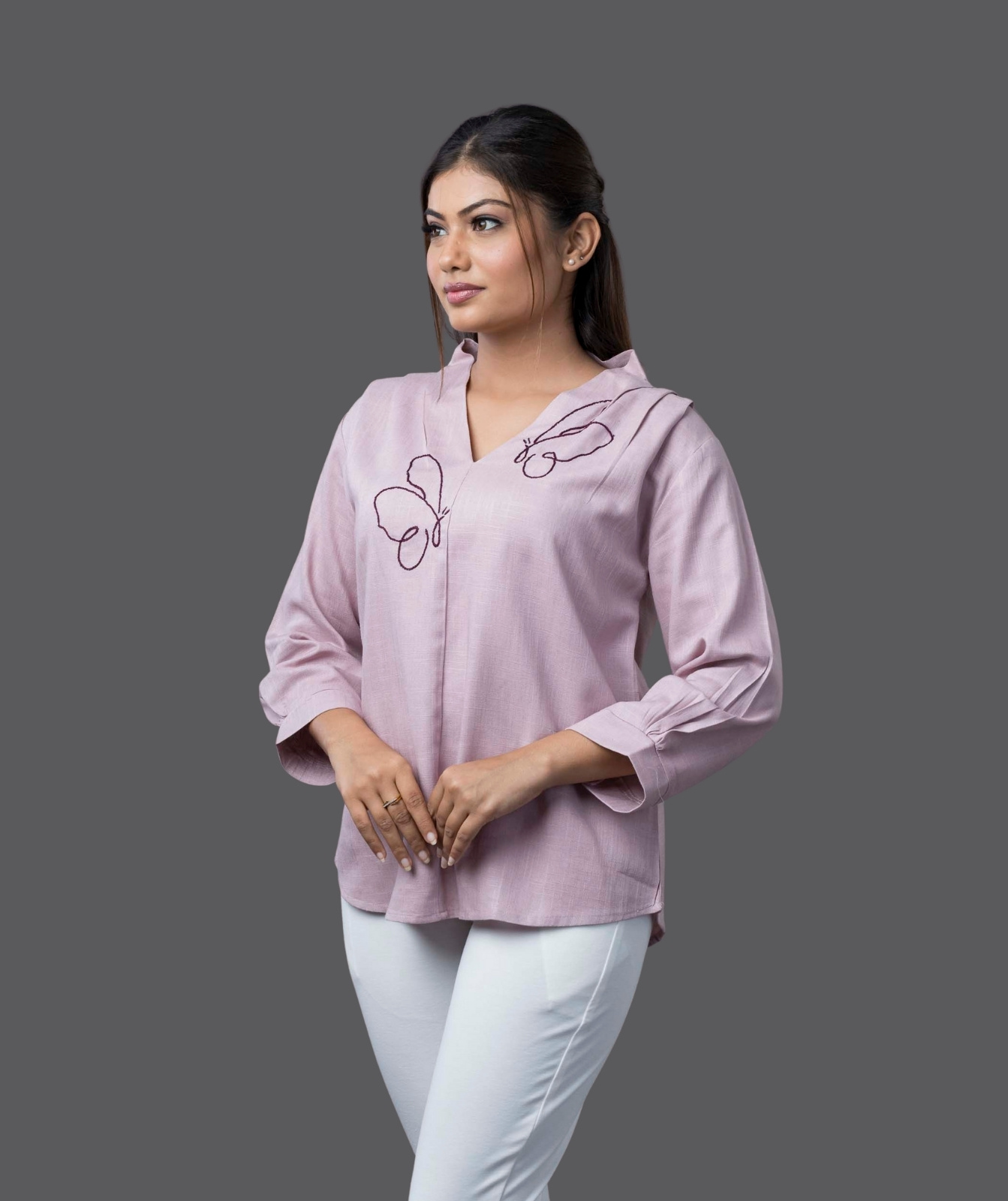 Effortlessly chic and ultra-comfortable, this Pastel Top is a must-have staple for a relaxed yet stylish look. Crafted from soft, breathable fabric and butterfly embroidery handwork, it drapes beautifully for a flattering, laid-back silhouette. The soothing pastel tones add a touch of elegance, making it perfect for casual outings, workwear, or layering over statement pieces. Pair it with jeans, skirts, or trousers for an effortlessly modern vibe.