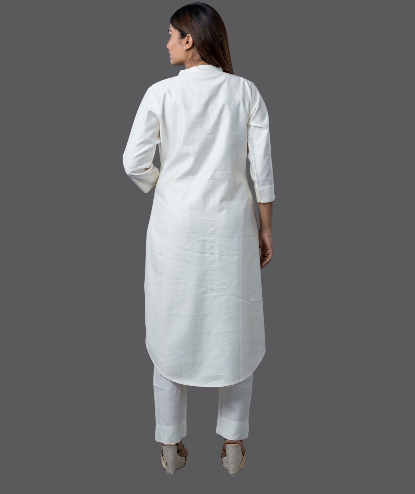Embrace timeless elegance with this Off-White Silk Long Co-ord Set, beautifully adorned with intricate embroidery. Crafted from premium silk, this ensemble features a long, flowy silhouette that exudes sophistication and grace. The delicate embroidery adds a touch of artisanal charm, making it perfect for festive occasions, formal gatherings, or elegant everyday wear. Designed for comfort and style, this co-ord set includes a tailored top and matching bottoms, offering effortless luxury with a contemporary appeal.