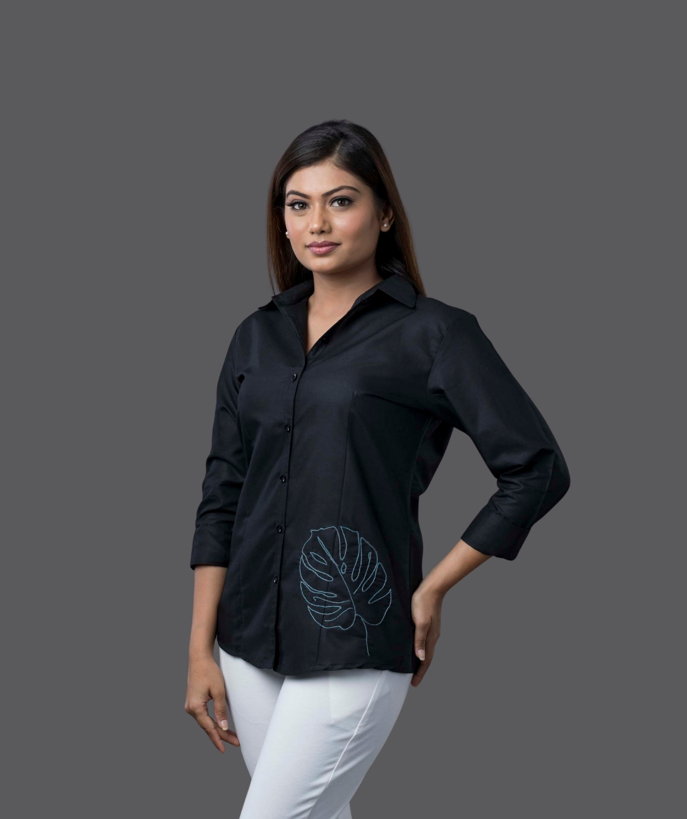 Experience the perfect blend of elegance and craftsmanship with this Tux Cotton Shirt, featuring exquisite hand-embroidered leaf motifs. Crafted from premium cotton, this shirt offers a breathable, soft texture for all-day comfort. The delicate embroidery adds an artisanal touch, making it a timeless wardrobe essential. Designed with a classic collar and a relaxed fit, this piece effortlessly